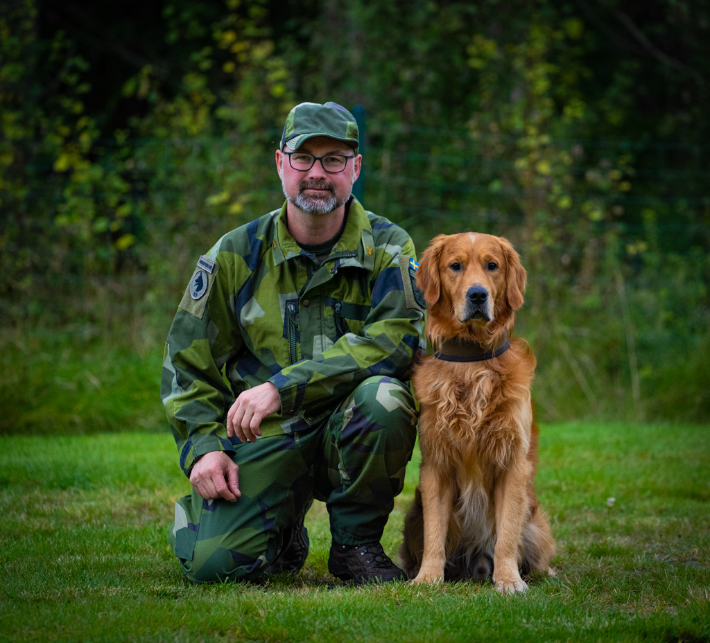 Min nuvarande hund är Golden Retrievern Remus, som är certifierad som tjänstehund patrull för Hemvärnet.